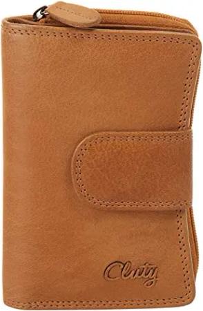 Geldbörse im Querformat Echt Leder Damen | Portemonnaie mit RFID-Schutz, Brieftasche für Damen, Geldbeutel mit Münzfach, Kartenetui aus Leder Cognac | 020353