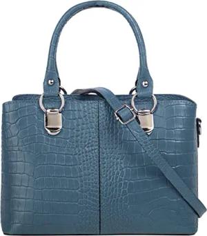 Umhängetasche Echt Leder Damen | Made in Italy, Kroko-Optik Handtasche, Damen Schultertasche, elegante Henkeltasche blau | 021374