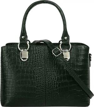 Umhängetasche Echt Leder Damen | Made in Italy, Kroko-Optik Handtasche, Damen Schultertasche, elegante Henkeltasche dunkelgrün | 021374