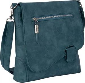 Damen Tasche, Schultertasche, Handtasche, Umhängetasche mit Leder Optik und vielen Fächern (BLAU-GRAU)