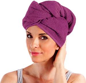 Turban, Haarturban mit Knopf anthrazit Größe 28x70 cm - auch als Kinderturban geeignet 100% Baumwolle, saugstark, Stabiler Halt - (weitere Farben)