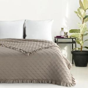 Gesteppte Bettdecke mit Rauten, Stillvolle Decke in Diamanten-Steppung, Volant, Steppdecke im Landhausstil, Bettüberwurf Vanesa (Dunkelbeige, 220 x 240 cm)