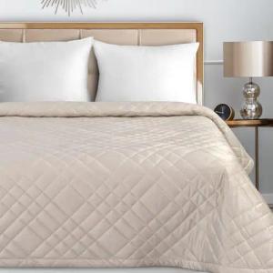 Eleganter Bettüberwurf Samt Blink 6 – Beige – 170x210 cm – Steppdecke mit Rauten & Silberakzenten