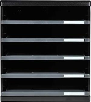 303714D Ablagebox Modulo mit 5 offene Schubladen für DIN A4+ Dokumente. Belastbare Schubladenbox mit hoher Kapazität für mehr Platz auf dem Schreibtisch schwarz / mausgrau