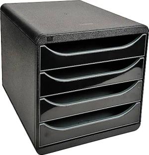 3104214D Premium Ablagebox mit 4 Schubladen für DIN A4+ Dokumente. Belastbare Schubladenbox mit hoher Kapazität für mehr Platz auf dem Schreibtisch Big Box Glossy Schwarz|Grau