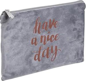 52820E Federmäppchen Ellipse flach aus Samt mit "Have a nice day" Schriftzug 17 x 24 cm 1 Stück Zufallsfarbe Federtasche Schlampermäppchen ideal für Schule und Universität