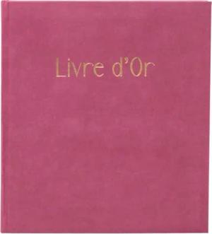 Ref. 390E - 1 Gästebuch Skandi - kompaktes Format 21 x 19 cm - Samt-Optik - Goldmarkierung mit Gästebuchschrift - Goldrücken - 140 weiße Seiten einfarbig - Farbe: Altrosa
