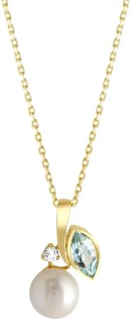 Halskette 375 Gold mit Blautopas (beh.), Perle wei und Zirkonia