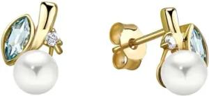 Ohrringe Gold 375 mit weißer Perle 6,5mm, echtem Blautopas (beh.) und Zirkonia weiß