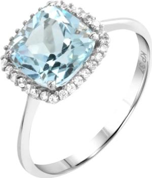 Ring Weißgold 375 mit echtem Blautopas (beh.) und Zirkonia-Steinen