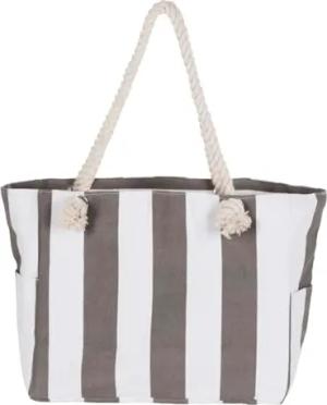 Strandtasche, grau-weiß gestreift, Reißverschluss, 40 x 34 x 18 cm, mit Seilgriffen