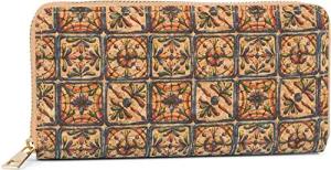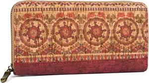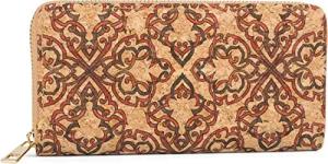 Damen Geldbörse aus Kork mit Buntem Muster Print im Ethno Look, Reißverschluss, Portemonnaie 02040138, Farbe:Rot-Braun