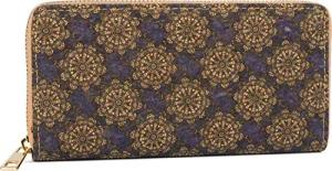 Damen Geldbörse aus Kork mit Buntem Muster Print im Ethno Look, Reißverschluss, Portemonnaie 02040138, Farbe:Violett-Schwarz