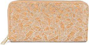Damen Geldbörse aus Kork mit Geometrischem Metallic Prisma Muster, Reißverschluss, Portemonnaie 02040148, Farbe:Silber