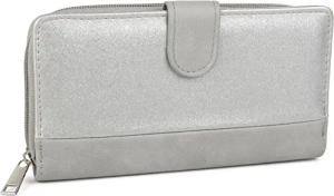 Damen Geldbörse im 2-Tone Metallic Look mit Reißverschluss und Druckknopf - Portemonnaie mit viel Stauraum 02040082, Farbe:Hellgrau/Silber