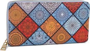 Damen Geldbörse mit Boho Ornament Muster, Mandala Stil, Reißverschluss, Portemonnaie 02040144, Farbe:Blau-Orange-Weiß
