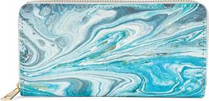 Damen Geldbörse mit Marmor Muster, Reißverschluss, Portemonnaie 02040152, Farbe:Blau-Türkis-Weiß