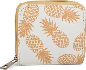 Damen Mini Geldbörse mit Ananas Muster, umlaufender Reißverschluss, Portemonnaie 02040097, Farbe:Weiß-Orange