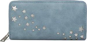 Damen Portemonnaie mit Metallic Sternen | große Geldbörse mit Reißverschluss, Kartenfächern & Handyfach, Kunstleder 19 x 10 cm, Farbe:Blau