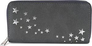 Damen Portemonnaie mit Metallic Sternen | große Geldbörse mit Reißverschluss, Kartenfächern & Handyfach, Kunstleder 19 x 10 cm, Farbe:Dunkelgrau