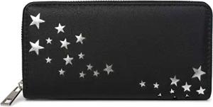 Damen Portemonnaie mit Metallic Sternen | große Geldbörse mit Reißverschluss, Kartenfächern & Handyfach, Kunstleder 19 x 10 cm, Farbe:Schwarz