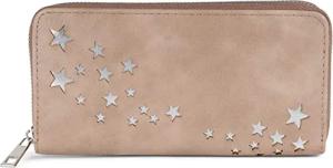Damen Portemonnaie mit Metallic Sternen | große Geldbörse mit Reißverschluss, Kartenfächern & Handyfach, Kunstleder 19 x 10 cm, Farbe:Taupe