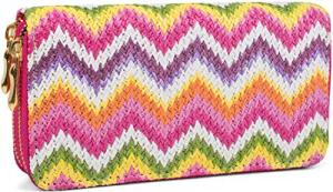 Geldbörse mit Buntem Zick-Zack Muster im Ethno Design, Reißverschluss, Portemonnaie, Damen 02040049, Farbe:Pink-Mehrfarbig-längs