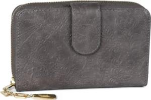 Geldbörse mit Paisley Blumen Blüten Prägung, umlaufender Reißverschluss und RFID Schutz, Portemonnaie, Damen 02040098, Farbe:Dunkelgrau