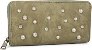 Geldbörse mit Perlen besetzter Vorderseite, umlaufender Reißverschluss, Portemonnaie, Damen 02040092, Farbe:Oliv