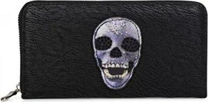 Geldbörse mit Totenkopf Applikation und Strass, umlaufender Reißverschluss, Portemonnaie, Damen 02040053, Farbe:Schwarz