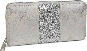 Geldbörse mit umlaufendem Pailletten Streifen, Reißverschluss, Portemonnaie, Damen 02040056, Farbe:Antik-Silber