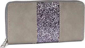 Geldbörse mit umlaufendem Pailletten Streifen, Reißverschluss, Portemonnaie, Damen 02040056, Farbe:Grau-Silber