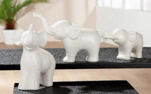 Deko Elefanten Familie - Elepfanten Trio 3-teiliges Set - Tierfigur Dekoration Porzellan - Farbe: Weiß - Breite 15,5/14 / 20,5 cm