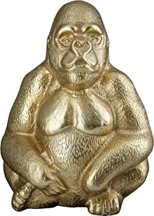 Deko Tier Figur Skulptur Gorilla - Moderne Kunst und Dekoaration aus Kunstharz - Farbe: Gold - Höhe 27 cm