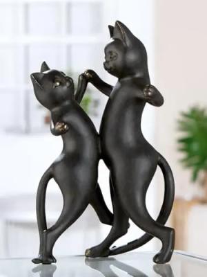 Figur Gatto, Kunstharz, schwarz, metallische Optik, Katze, H: 30,5 cm, B: 17,5 cm, T: 16 cm - Deko, Skulptur, Wohnaccessoire, Geschenk