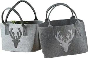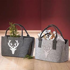 Filztasche Hirsch Glitter Grau mit Riemen Zeitung Shopping Holz Korb Tasche ca 26 x 44