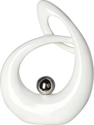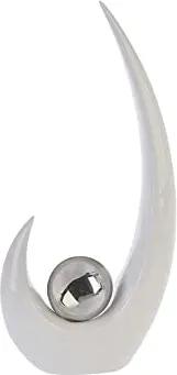 Moderne Skulptur Figur Move - aus Keramik in weiß/Silber mit silberner Kugel - Höhe 37 cm