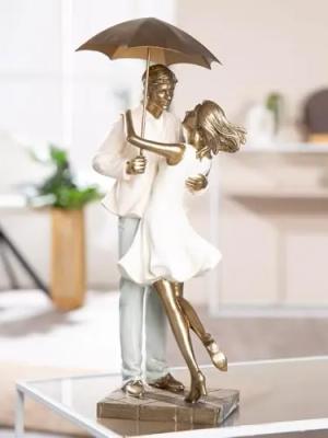 Skulptur Love in The Rain, Poly, Creme/goldfarben, metallische Optik, Paar, 39x17x15 cm