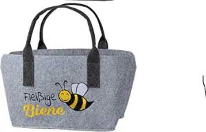 Tasche Fleißige Biene aus Filz mit besticktem Motiv 2fach Sortiert, in der Farbe Hell oder Dunkelgrau, 40x26x25cm, 45541