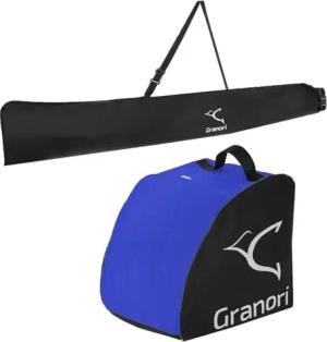 Rolltop Skitasche + Skischuhtasche Kombi-Set für 1 Paar Skischuhe & Ski bis 195 cm Länge (größenvariabel einstellbar) (Schwarz/Blau)