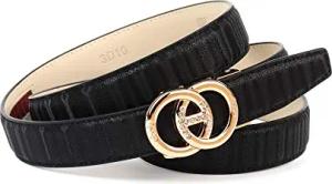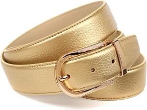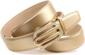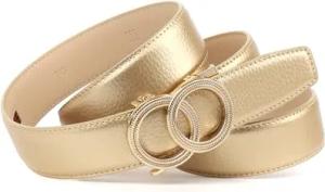 Damen Automatikgürtel – Goldfarbener Ledergürtel mit Doppelring-Schließe, 3,5 cm Breite (90)