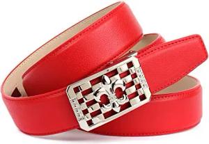 Damen Automatikgürtel – Exklusiver Damen-Ledergürtel aus goldfarbenem Leder mit Automatikschließe und rotem Zahnrad – 3,5 cm (100)