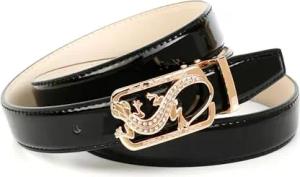 Damen Ledergürtel – goldfarbenes Leder, Eidechsen-Schließe mit Kristallen & grünen Augen, kürzbar mit Clipverschluss, elegantes Accessoire für stilvolle Outfits (100)