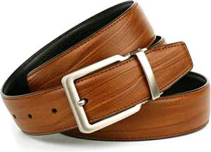 klassischer Wendegürtel Herren, Cognac/Schwarz, bombiert, mit Dornschließe, für Herrenanzug oder Jeans, 35 mm breit, Modell 1PN.N13, 85