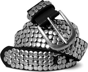 GU223L 100% Leder Damen Vintage Nietengürtel, Gürtelgröße:95, Farbe:camel