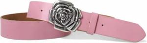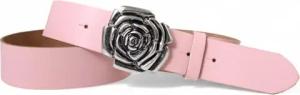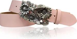 Damen Ledergürtel Rindsleder 4 cm breit Rosenblüten-Koppelschnalle altsilber 10 x 5 cm wechselbar mit Druckknopf extra flach für sommerliche Outfits