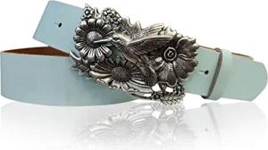Damen Ledergürtel Rindsleder 4 cm breit Kolibri Schnalle silber 9,5 x 6 cm Wechselgürtel Druckknopf Größen 85-120 gefertigt in Bayern