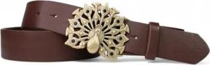 Gürtel Damen pflanzlich gegerbtes Vollrindleder 4 cm Breite 3,3 mm stark goldene Pfauschnalle Pfau mit schwarzem Strass nickelfrei für casual und elegant