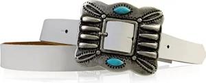 Ledergürtel echtes Rindleder 2,2 cm schmal große antiksilberne Gürtelschnalle 7 cm x 6 cm mit türkisen Steinen Boho Taillengürtel für Kleider Made in Germany