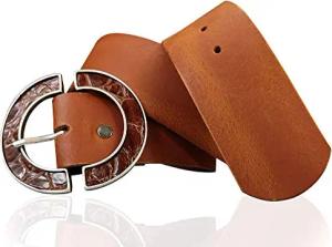 Damen Rindsledergürtel 4,2 cm breit mit 7 cm Ringschnalle, stufenlos verstellbar, für Jeans, Made in Germany